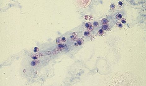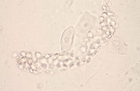 円柱基質内に3個以上の白血球が含有したものを白血球円柱と呼ぶ。
