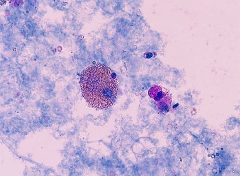 尿細管上皮細胞、大食細胞が脂肪変性した細胞