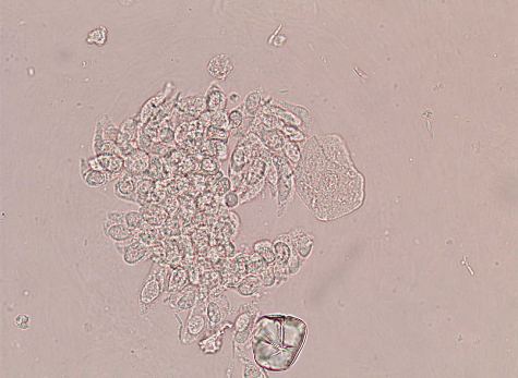 線毛を有したり、脂肪化しているものもある。深層の移行上皮細胞との鑑別が必要