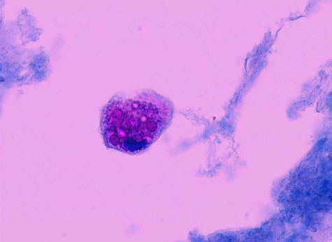 細胞質に無構造な円形、馬蹄形の封入物を含有