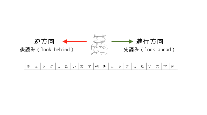 その意味で、英語の「look-ahead」「look-behind」で覚える方が間違えにくいかもしれません。